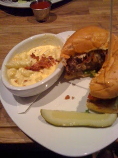This is when we went to Atlanta for Daddy's interview with Capgemini. Mommy is very lucky and has some of the best friends anyone could ever ask for, and 4 of them happen to live in Atlanta. This was such an awesome night as we got to meet with all of them. This is a picture of you and Aunt Laura and I. Aunt Laura and I have been friends since grade school and love each other dearly. We ate at this really neat restaurant called the Nook with Daddy, Aunt Kali, Aunt Kim, Aunt Jenn, Betsy (Laura's sister),Aunt Laura and her boyfriend John. The food was so good, so good I actually took a picture of Daddy's burger.